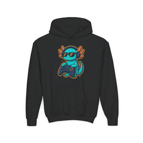 Axolotl Gamer Youth Hoodie — Cool Sunglasses Gaming Axolotl Pullover